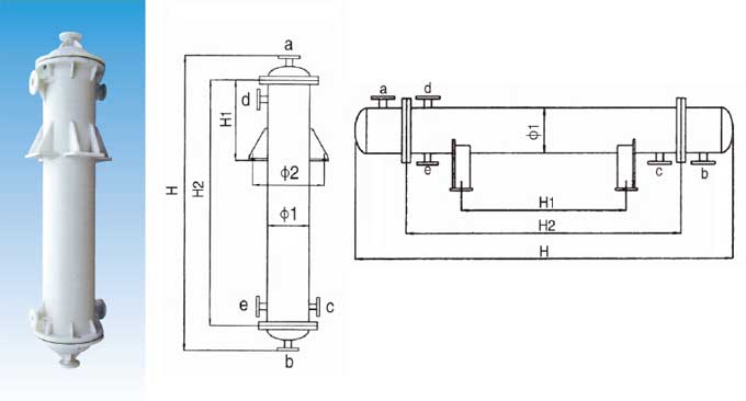 a.介質入口或出口 b.介質入口或出口 c.冷卻水入口 d.冷卻水出口 e.排凈口
