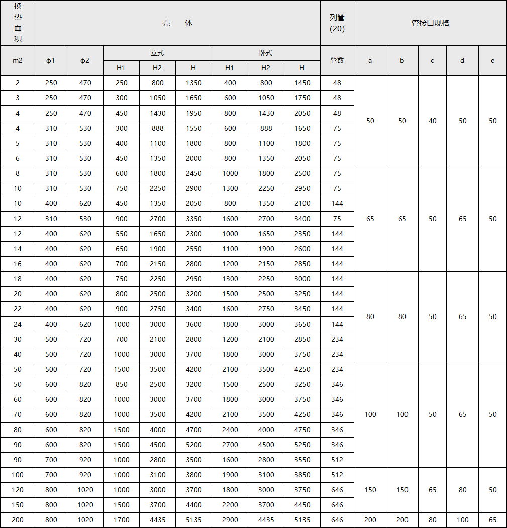 2、每臺換熱器規格面積由客戶確定,規格請參考換熱器規格表。